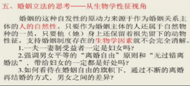 本次讲座主要由婚姻演变、两性博弈以及婚姻思考等五个方面组成。李博老师就自私的基因与婚姻关系、婚姻制度、婚姻形态的演变等内容进行了详细讲解。在婚姻形态方面,李博老师分别列举了曾存在过的几种婚姻形态,同时就个别形态进行具体分析。他指出:“国家强制实行的一夫一妻制,并不像通常所理解的那样单单就是为了保护和提高女性在婚姻中的地位,而且还是为了保护弱者的基因延续进而维护社会的稳定”“人类的许多婚姻制度实际上是在两性博弈过程中形成的,许多婚姻现象也必须放在这场博弈中才能正确地予以解释”以及在婚姻思考中“现行的婚姻制度,受益最多的不一定是妇女,而更可能是处于社会底层的男性弱者”。在讲座的最后,李博老师还带领同学们从生物学性征视角对婚姻立法进行了三方面的思考。